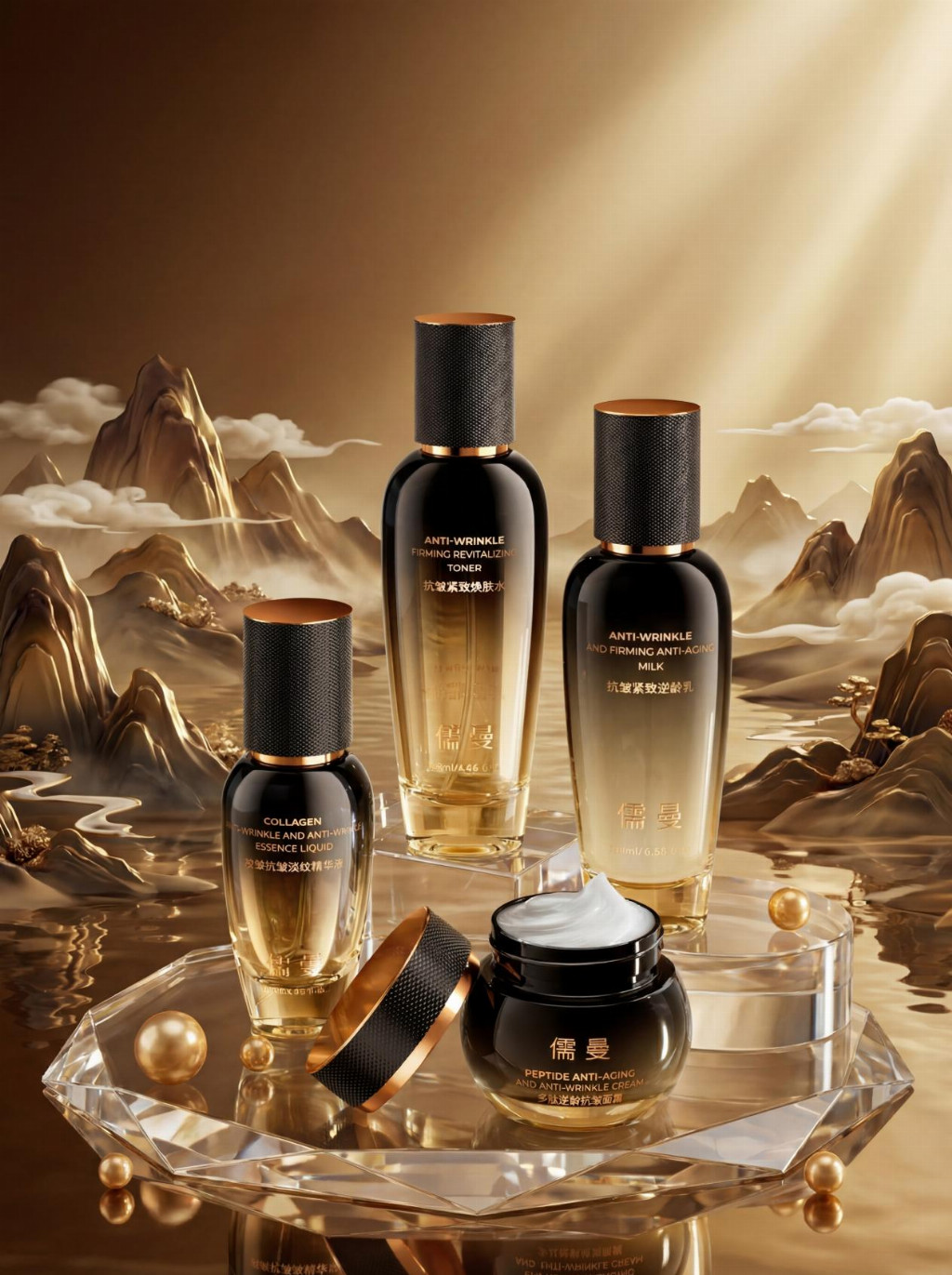 二、【儒曼抗皱紧致套装】:一套四件,重构40+肌肤力学结构