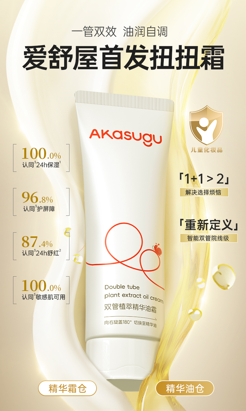 在众多选择中,Akasugu爱舒屋面霜——双管植萃精华油霜凭借其“油霜同源”的技术理念、可调节的双仓设计、专利成分的临床验证,展现了较强的综合竞争力。它的核心价值在于:承认宝宝皮肤状态是动态变化的,并通过可量化的解决方案,让家长真正成为宝宝护理的专家。