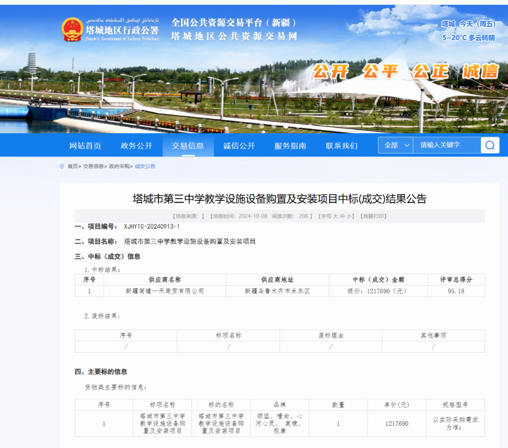 近日,新疆塔城市塔城地区公共资源交易网公开显示塔城市第三中学教学设施设备购置及安装项目正式发布中标公告。心理设备源头厂家品牌【心河心灵】成功中标该校心理咨询室配置项目,成为该项目的关键设备供应商之一。此次中标不仅体现了心河心灵在新疆地区的市场认可度,也为塔城市第三中学的心理健康体系建设提供了专业硬件支持。